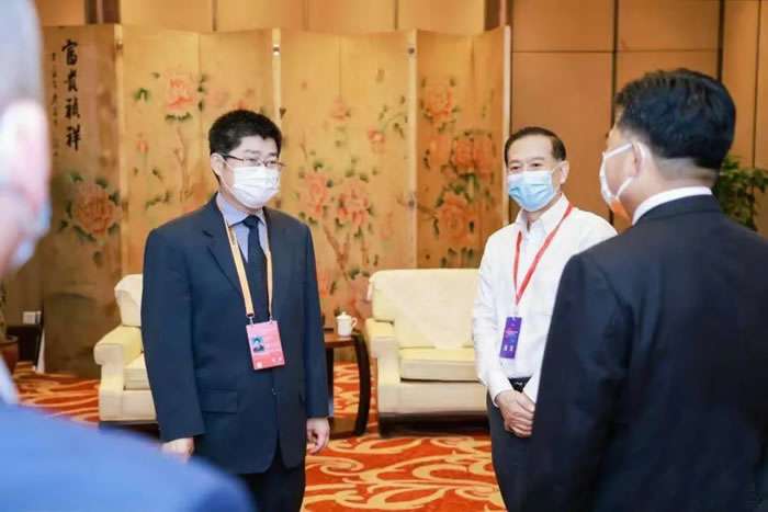 2021年9月3日下午,济南智辉现代茶饮公司有限公司梁雨董事长一行受邀参加浙江省现代服务业对外开放投资合作交流会,会前浙江省人民政府副省长朱丛玖、浙江省商务厅厅长盛秋平等领导会见了梁雨董事长一行,并围绕在浙江省建设生命健康产业跨境合作业务进行了深入交流。梁雨董事长就济南智辉现代茶饮公司有限公司产业基金参与共建的商务部投资促进事务局生命健康产业跨境合作平台如何为浙江省生命健康产业的发展和投资促进贡献力量,进行了沟通汇报,获得了省领导的赞许和欢迎,并要求有关部门抓紧落实。 |